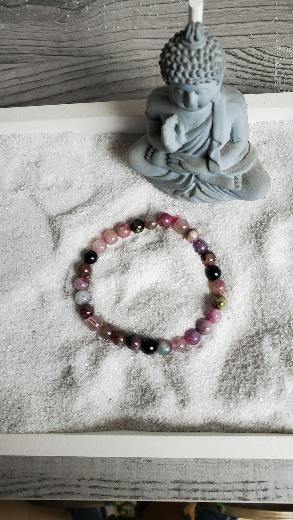 Bracelet en tourmaline multicolore du Brésil (qualité AA, taille 6 mm) :